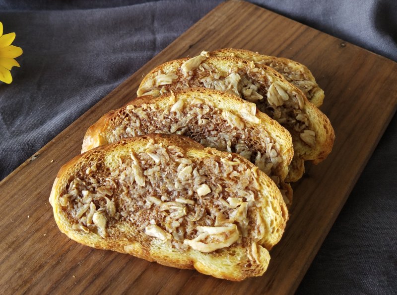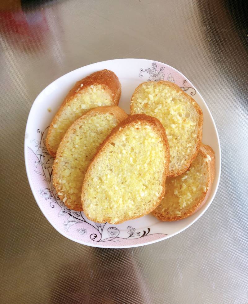 6:表皮焦脆,蒜香扑鼻的烤面包片完成。