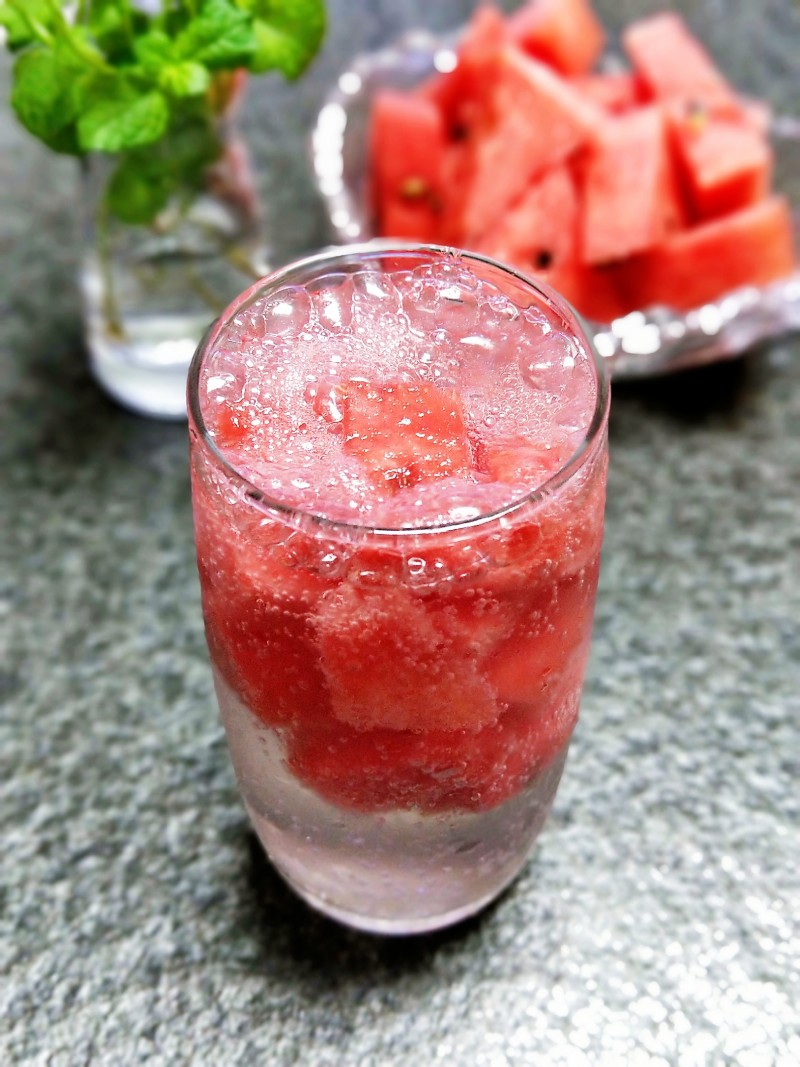 8:这杯冰冰凉的西瓜雪碧饮就做好了,炎炎夏日来一杯,幸福100%。