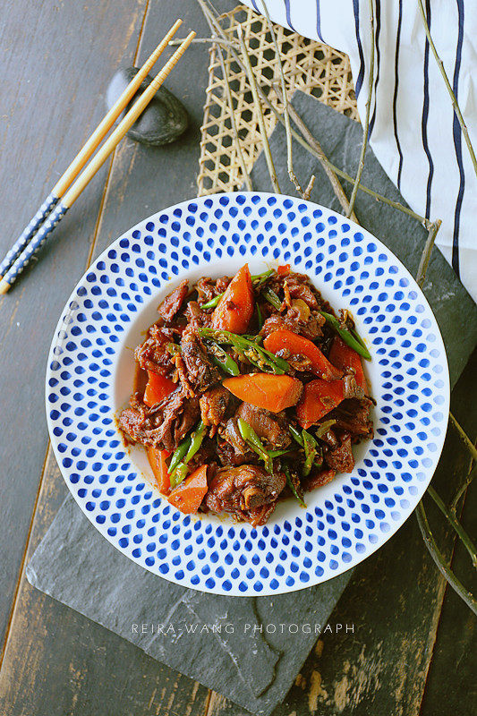 4:煮至胡萝卜软烂,收汁,差不多的时候就放入酱油,耗油,收干,