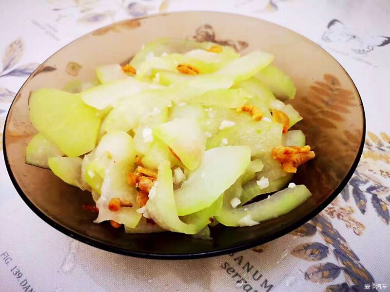 2:起锅烧油,油热下蒜片爆香,然后倒入冬瓜翻炒。