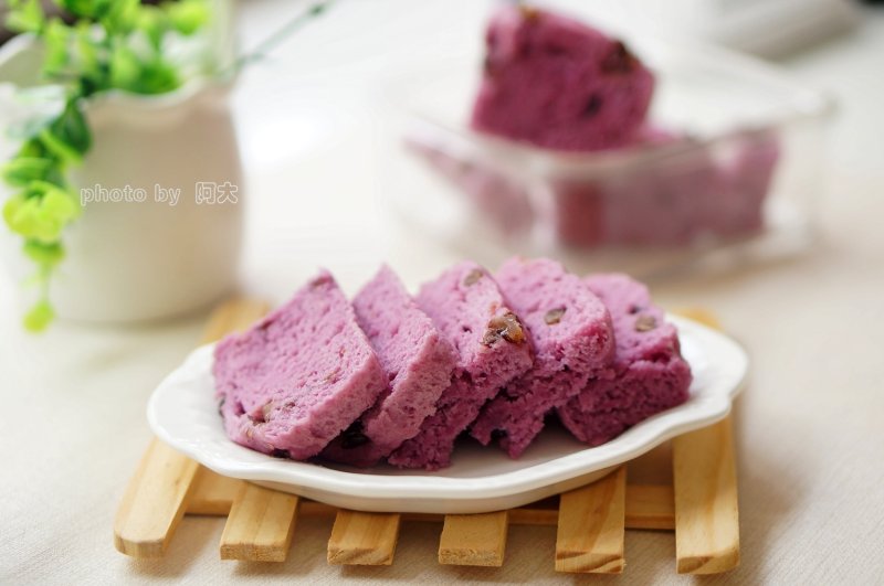1:紫薯洗干净蒸熟,去皮后压成泥。