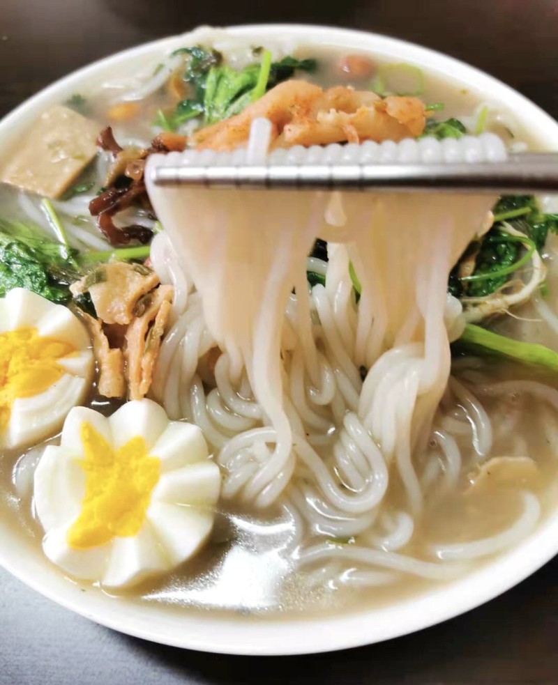 3:打开米粉包装,有点东北粉条的感觉,别误会哈,米粉和粉条可是不一样,它是由大米做成的,特别抗煮。