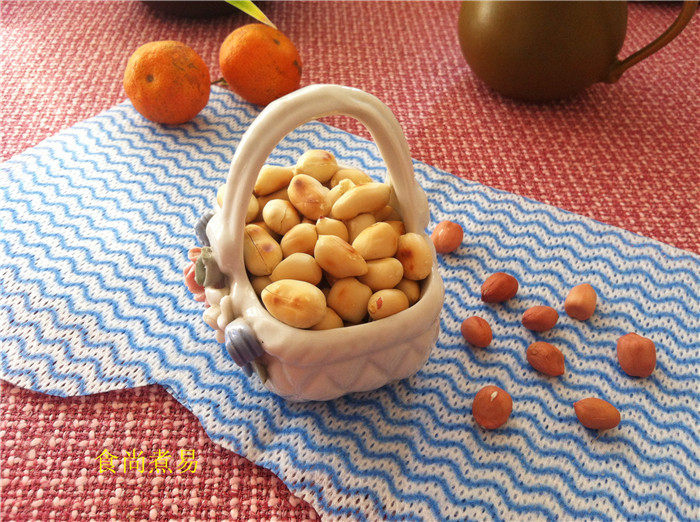 3:剥去花生米的红衣,用厨房纸吸干水分