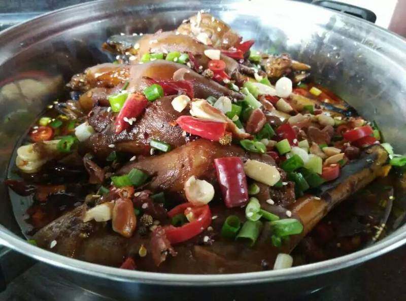 5:焖好羊蹄捞起来。豆鼓,海椒。炝锅