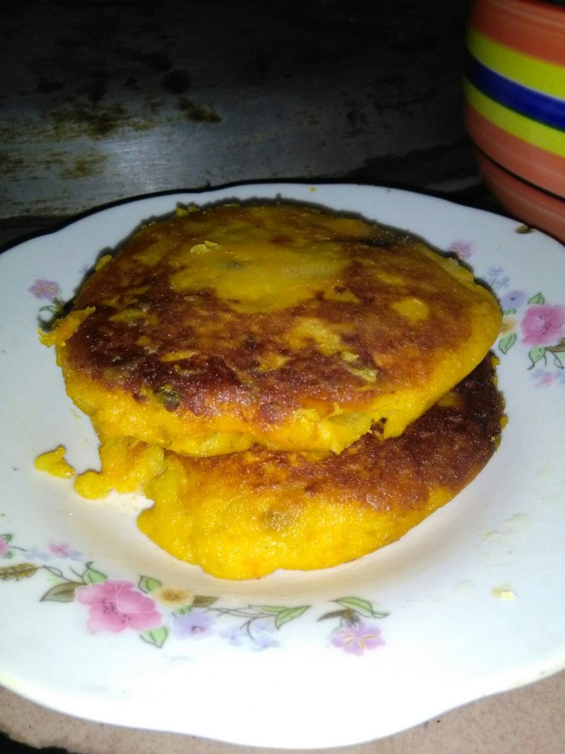 7:锅底放油,开小火煎饼至两面金黄即可。