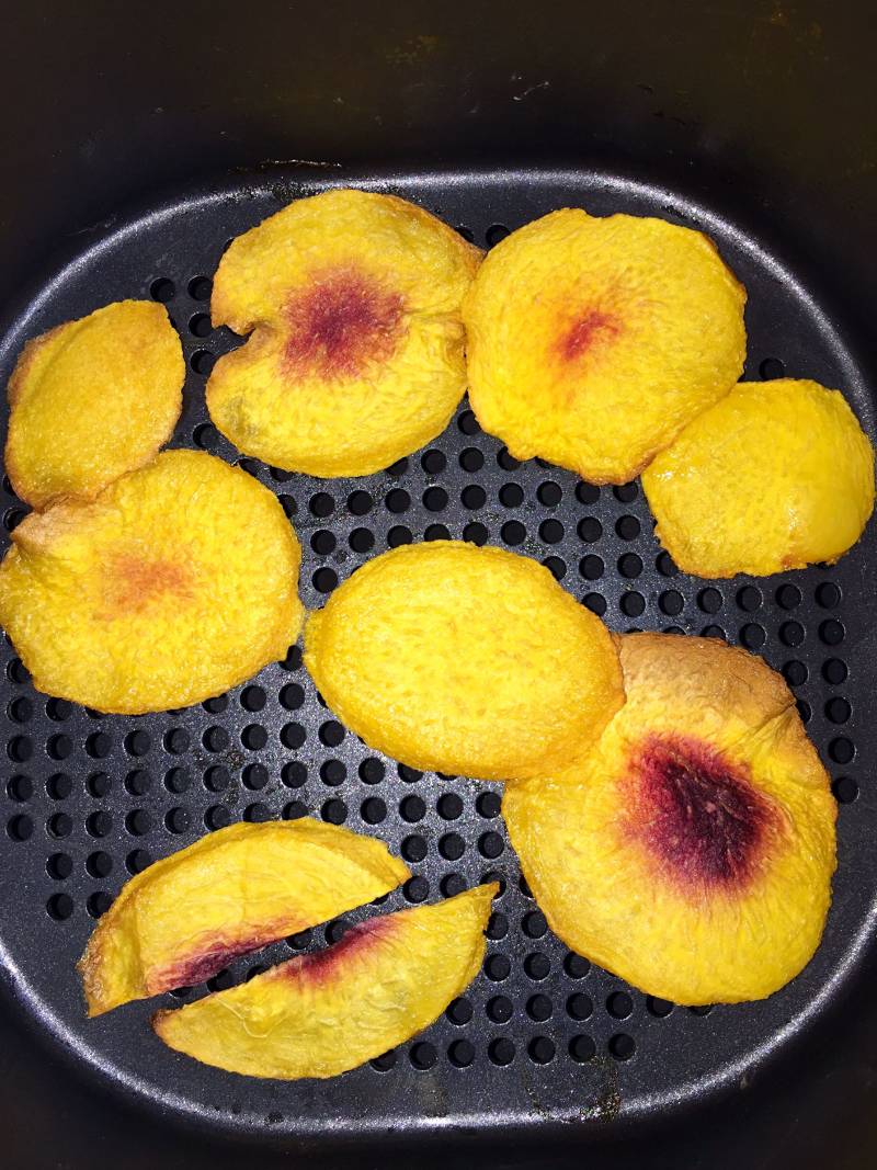 1:洗干净,把黄桃切薄片,放入空气炸锅,150度20分钟,你就可以去做其他的事情了。