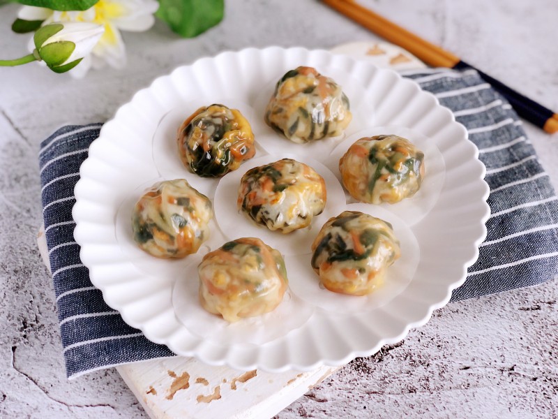 11:蒸好后直接出炉,蔬菜包自己就会变成晶莹透亮的样子啦,搭配喜欢的馅料更好吃。