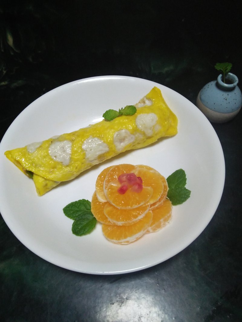9:这样子一份麸皮玉米蛋饼就完成了。