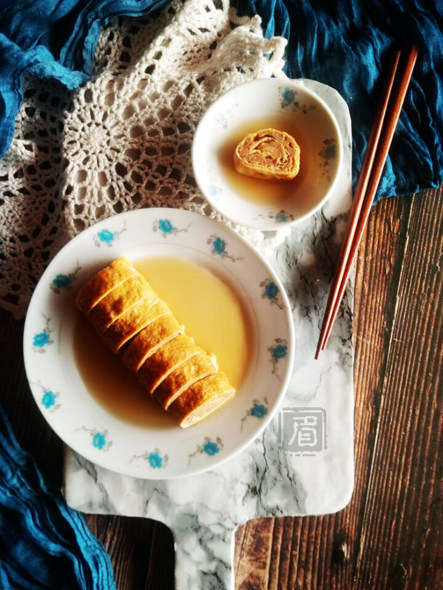 10:装盘,这样无论是拿着吃还是切开吃,蛋卷都不会散的。