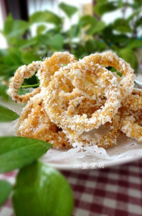 7:放入洋葱圈炸至金黄捞出