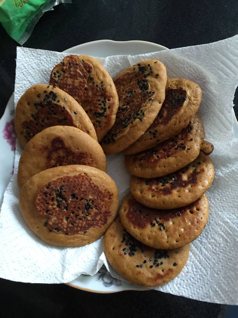 2:平底锅烧热,刷油,用勺子一勺一勺的倒上去,排列好,不要太紧凑,以免粘连。