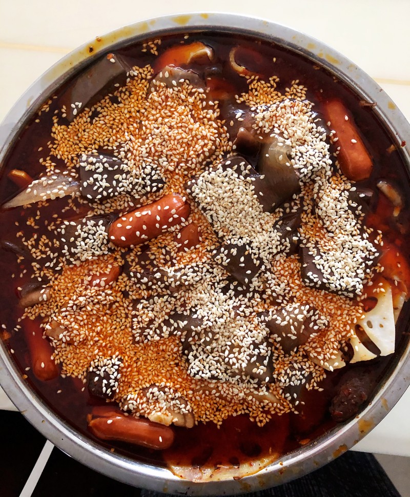 13:撒上芝麻,一锅香喷喷的钵钵鸡就做好啦!