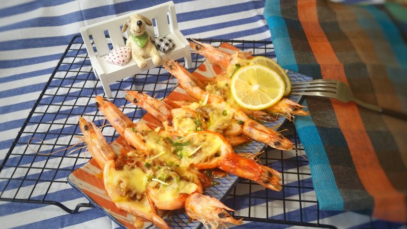 8:将虾放入烤箱220度10分钟;焗至芝士融化变成金黄色。