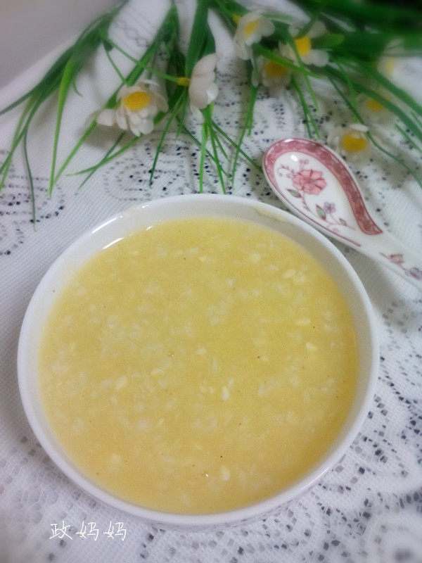 3:把蒸熟的玉米剥粒,放入煮好的白粥中,略煮就好