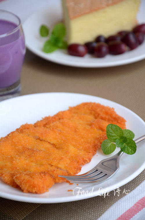 1:准备好食材(还有鸡蛋和面包糠番茄酱,忘拍了)