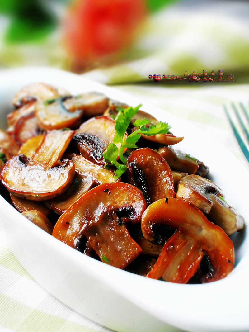 蘑菇洗干净后要沥干水分,不然炒出来水分太多也不好吃。