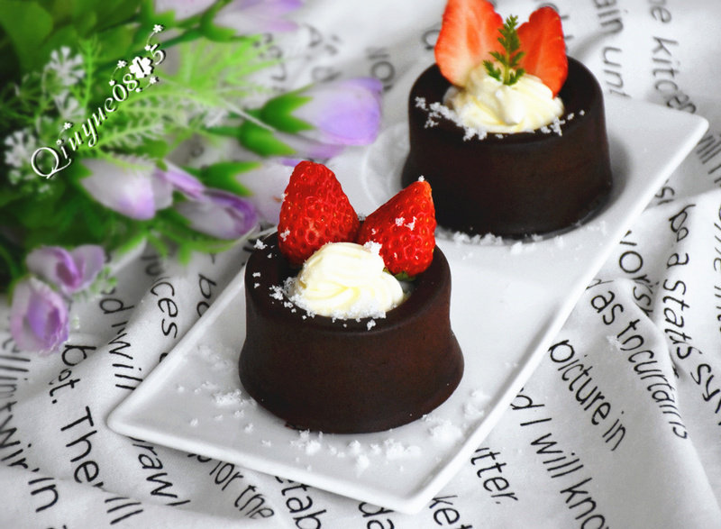 14:把奶油挤入蛋糕的凹处,然后放入自己喜欢的水果即可。