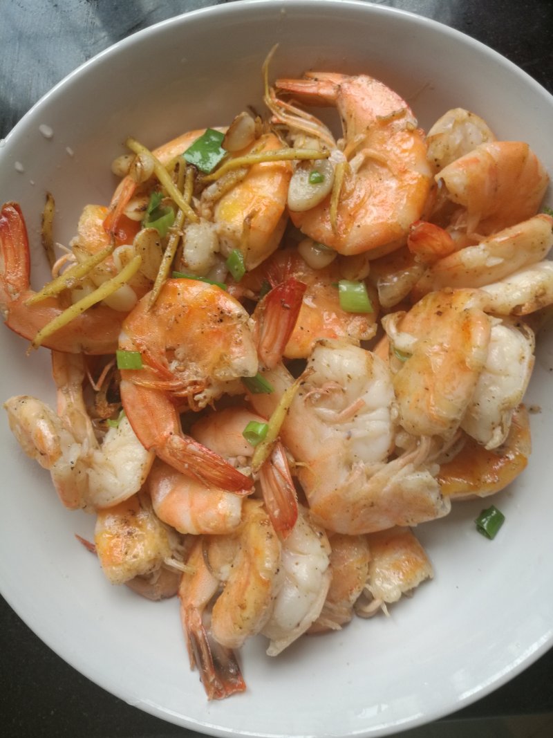 大虾350克;葱白2段;蒜头2瓣;生姜2片;