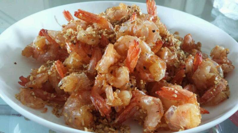 2:炸好了虾,再放蒜头盐