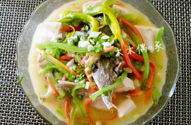 5:鱼头熬开后小火在熬几分钟,加入豆腐(豆腐先汆水)在熬几分钟加入黄花菜
