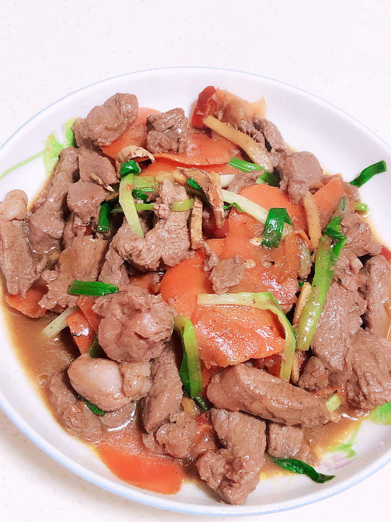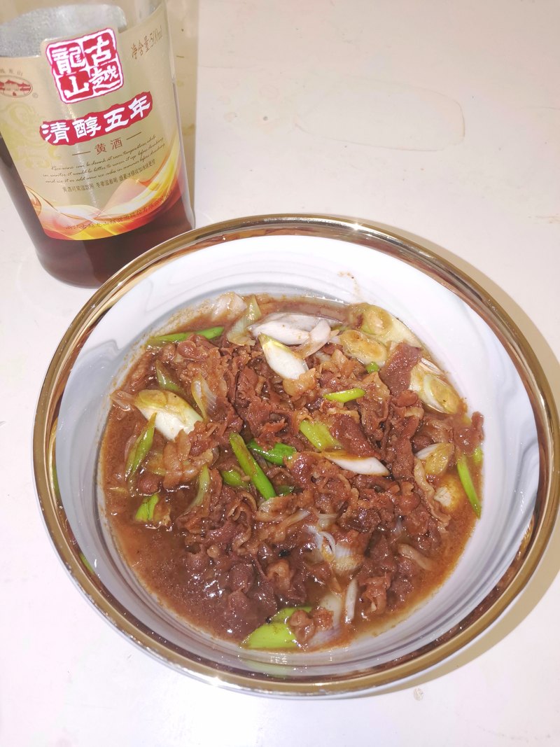羊肉片腌制10后一定要沥干水分,葱依据个人喜好可以酌情添加或减少。