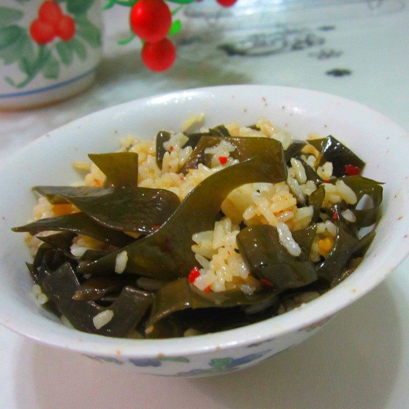海带丝适量;青红辣椒各适量;大蒜头适量;