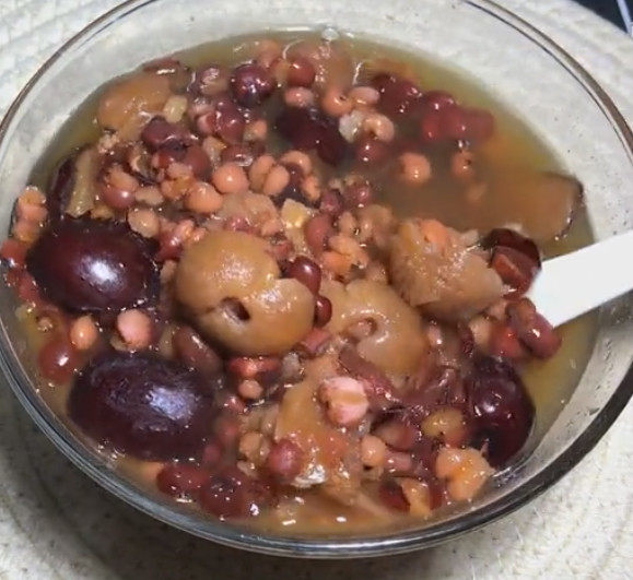 红豆半碗;薏米半碗;桂圆适量;红枣适量;