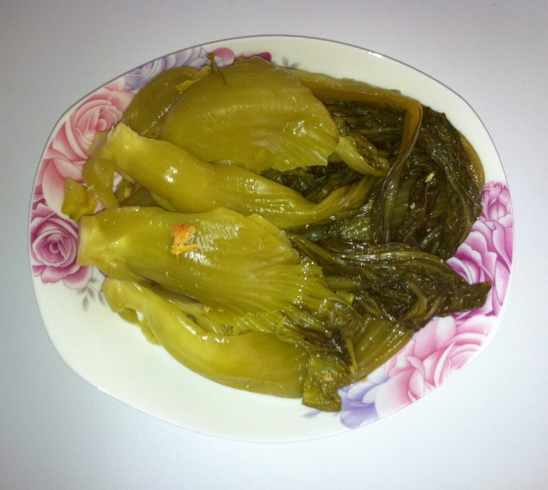 1:白菜切开,撒盐,过水腌制一星期左右,盐度自己尝尝,比一般酱菜要淡点