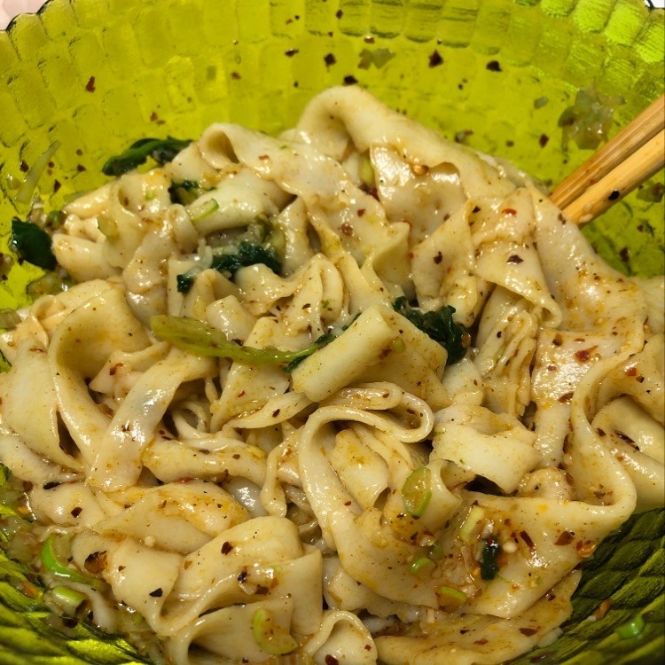7:做好的油泼面,香气扑鼻,面条筋道~