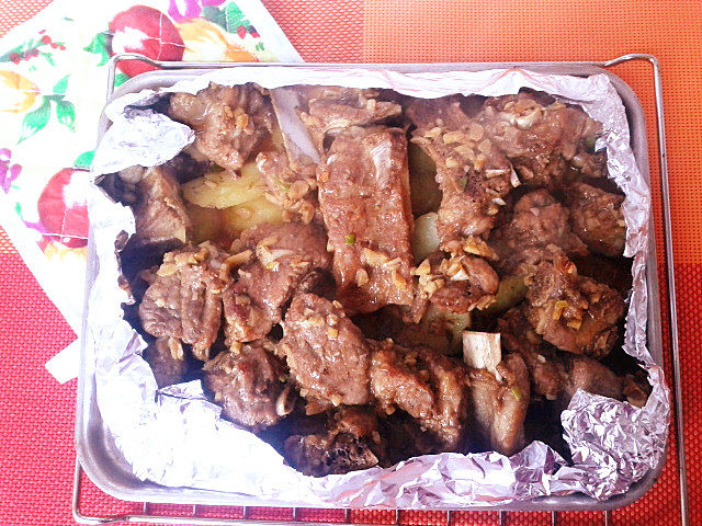 9:成品图,肉香四溢,肉质鲜嫩,肉汁丰富,且无油健康,底层的土豆很好的吸收了排骨的肉汁,相当入味儿,粉粉的很好吃,当当~