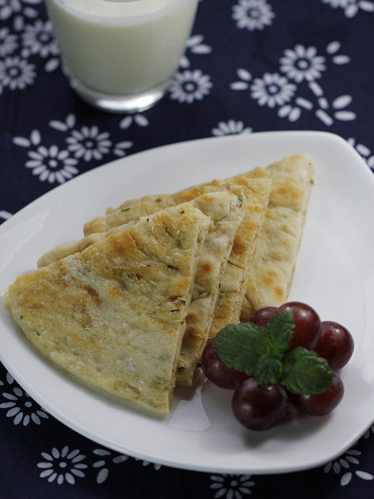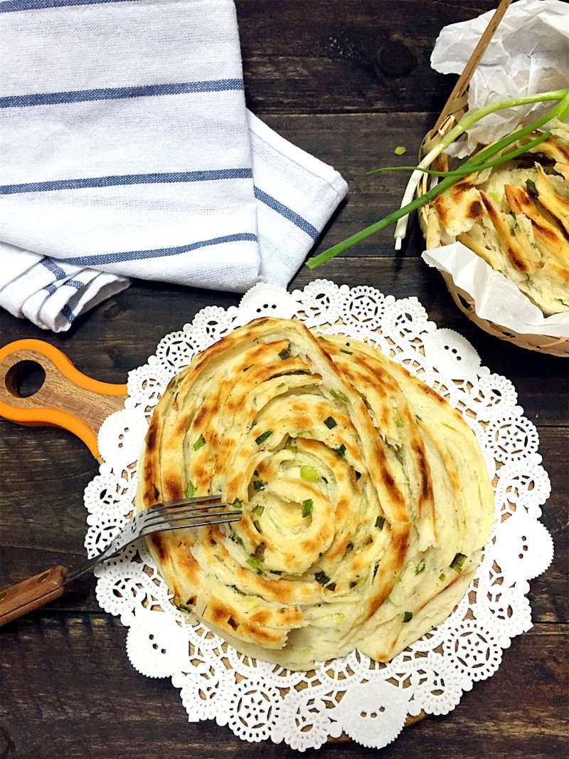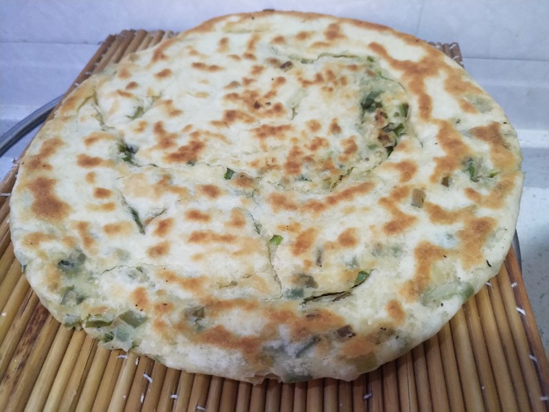 14:发面做的葱油饼,里面的面团组织非常松软可口。