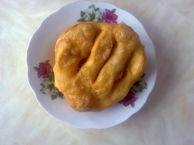 1:提前一晚发面。两碗白面,桔子那么大的面肥(面引子),用温水和成软的面团,放盆里,盖盖儿,一宿就发好了。