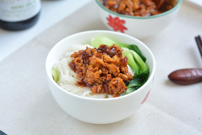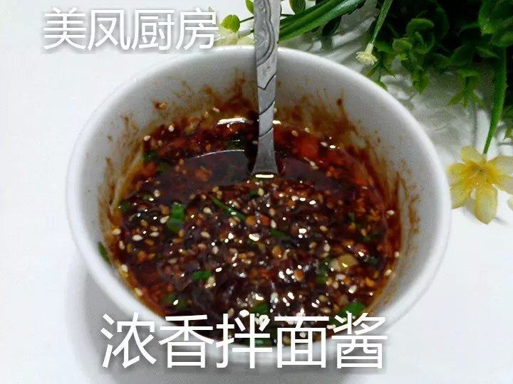 5:面条煮好捞出,放两大勺酱,吃的时候搅拌均匀即可