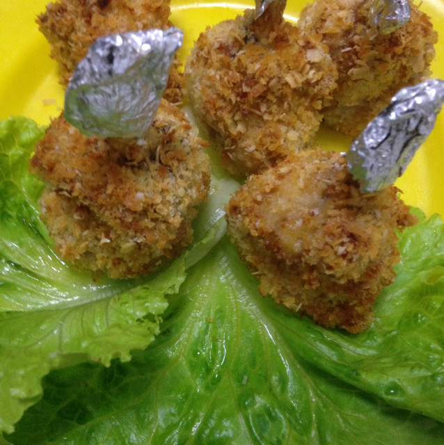 油适量;盐适量;辣椒粉适量;蒜适量;椒盐粉适量;孜然粉适量;蚝油适量;糖浆汁适量;面包糠适量;鸡蛋1个;