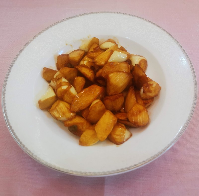 5:煮至茭白和肉变成深红色,收汁,盛入碗内