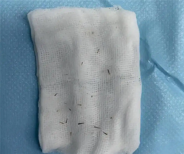 在局部麻醉下,医生借助眼科手术显微镜精细操作,逐一取出了董先生眼中深扎的板栗刺,共计19根。