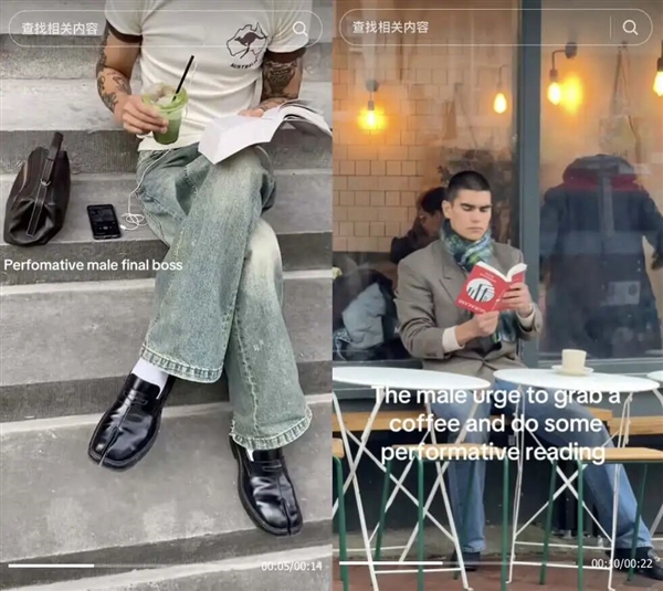 TikTok上关于#performativemale的内容观看次数超过1.49亿次,谷歌搜索关于“抹茶”“有线耳机”“表演型”的趋势大幅增加。大家玩梗都玩疯了。