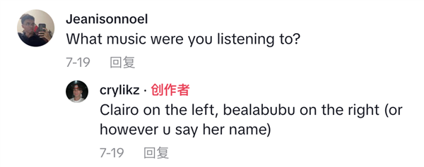 “左耳Clairo,右耳beabadoobee(甚至打不对名字)。”