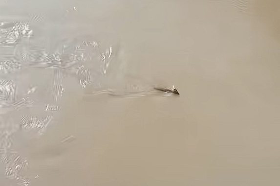 视频显示,有黄色不明生物在虎跳峡水中游,形状不像鱼类,头上有角,身长而直,视频拍摄者惊呼“是龙吗?”