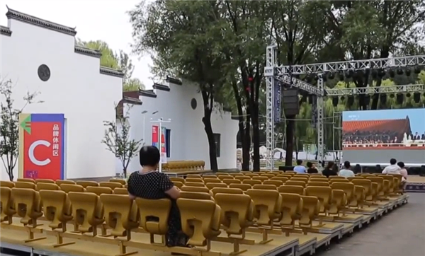红色座椅与首钢工业遗产特有的“铁锈红”色调相呼应,从天安门到首钢园,实现了跨场景高效复用,形成历史与现代的视觉融合。