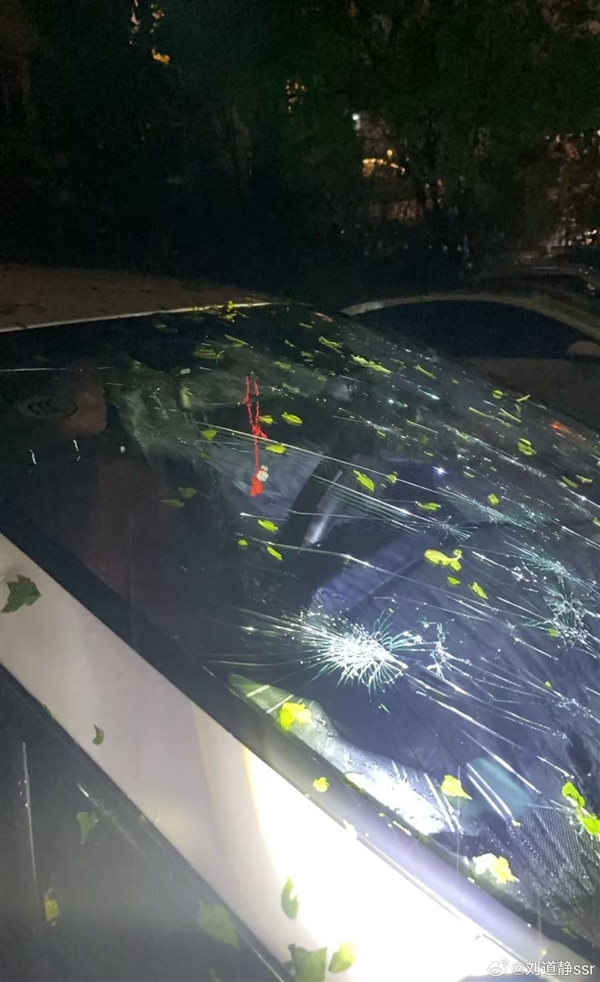 冰雹因为体积较大,对户外停放的车辆造成了较大损伤。有博主发布照片显示,自己的车辆前挡风玻璃被砸碎,车身上还全是凹坑。