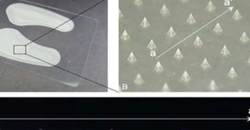 据介绍,这些贴片由专门的3D打印机形成,并带有针刺的微阵列,其独特的形状有助于将贴片固定在皮肤上,佩戴时即使是行走或刮风,也不会脱落。
