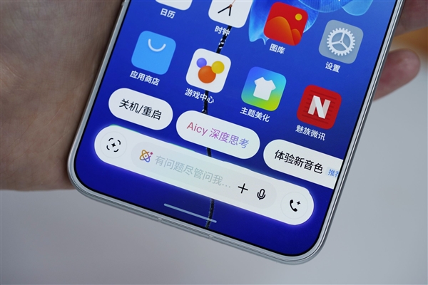 背面右上角矩形后摄,搭配Aicy灵动环,将科技感与实用性巧妙融合,魅族将这个后摄命名为“无界悬浮四矩阵Deco”。
