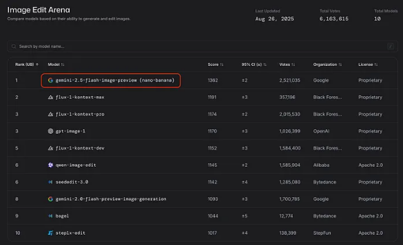 在与同类顶级图像模型的对比中,NanoBanana以平均胜率0.855的成绩位列第一,显示出突出的核心性能。