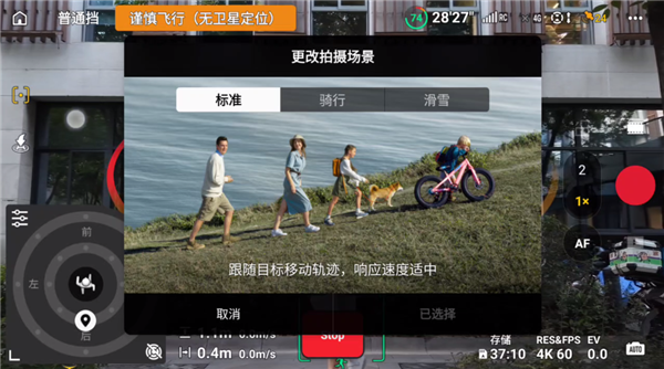 就拿全向智能跟随来说,它这次新增了多场景定制跟拍,支持标准和骑行等多种运动场景。