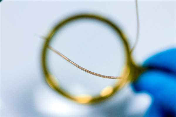 这根纤细的神经纤维电极沿轴向集成了多达60个独立的生物电信号采集通道。