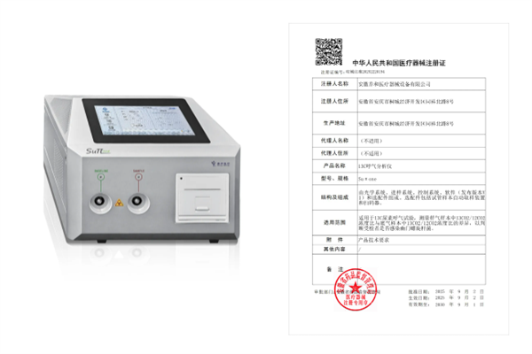 9月18日消息,据媒体报道,中国同辐旗下深圳市中核海得威生物科技有限公司自主研发的新型Suπ one 13C呼气分析仪,已于近日成功获得国家药品监督管理局颁发的第二类医疗器械注册证。