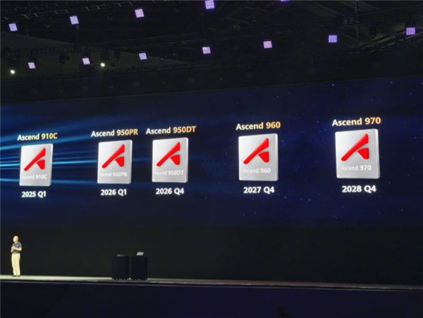 他表示,未来三年,华为已经规划了昇腾多款芯片,包括昇腾950PR、950DT以及昇腾960、970。其中昇腾950PR 2026年第一季度对外推出,该芯片采用了华为自研HBM。