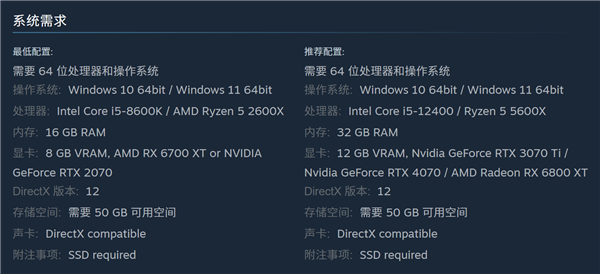 《泰坦之旅2》采用虚幻引擎5打造,建模和场景搭建相当精美。不过采用虚幻引擎5也带来一个问题,那就是硬件要求偏高。从Steam上可以看到,其推荐配置为i5-12400+RTX4070(桌面版),着实不低,而且明显依赖显卡。此次参测的OMEN暗影精灵11搭载的是i7-14650HX+RTX 5070 Laptop,理论上流畅运行是完全没有问题的。