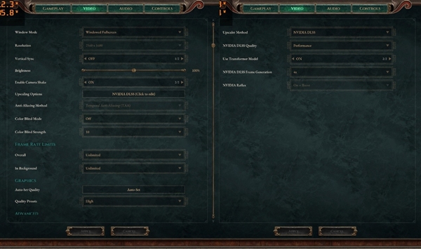 画质设置方面,选择2560x1600分辨率,关闭垂直同步,选择DLSS性能档,并开启4倍帧生成,画质预设选择高。测试路线选择由传送点“Home”步行至传送点“Proto Village Outskirts”(游戏不支持中文),过程中会有战斗。